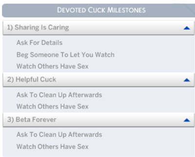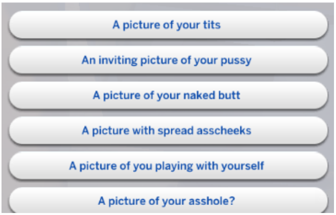 for baby to creampie, flirty to horny, unflirty to flaccid, send